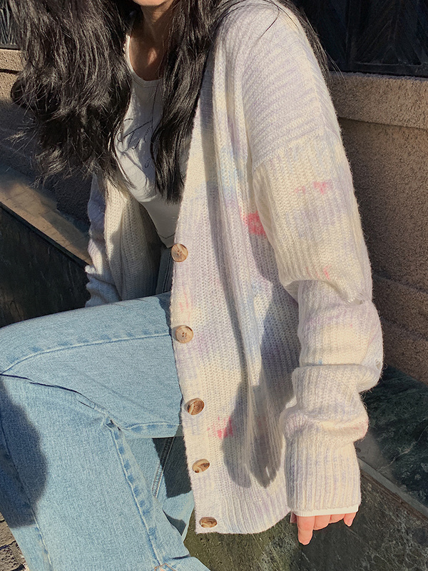 瀟灑胖mm顯瘦星空扎染針織開(kāi)衫女裝